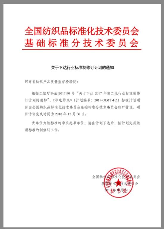 “導(dǎo)電紗線”標(biāo)準(zhǔn)正式立項(xiàng)