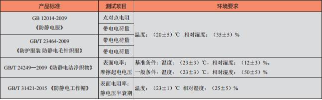 表 1 為相關產品標準,紡織品抗靜電測試對環境的要求比較嚴格,這是因為溫濕度對抗靜電的指標影響比較大,且直接影響測試結果的準確性和可重復性。因此,通常需要在滿足測試條件要求的恒溫恒濕實驗室進行測試。GB/T 12703《紡織品 靜電性能的評定》提供了 7 種不同的測試方法,而這些不同的測試方法所獲得的測試結果之間一般沒有直接關系。在某些抗靜電產品的測試中,客戶要求采用 GB/T 12703 中兩種以上的測試方法來檢測產品質量。而兩種方法測出的數據可能會出現相互矛盾現象,無法判定其抗靜電性能是否符合要求。例如:抗靜電紡織品通常通過在織造過程中嵌入金屬導電纖維獲得。這些導電材料通常在成品布上顯現條或格子狀樣式。對于此類產品,有的客戶要求使用電荷面密度和靜電壓半衰期同時考核抗靜電性能,會出現電荷面密度很低符合技術指標要求,但靜電壓半衰期降不下來的情況。又如,單面覆膜產品采用靜電壓半衰期測試抗靜電性能時,有金屬覆膜面測試的電壓、半衰期都顯示零,符合技術指標要求;而反面卻不能達到抗靜電技術要求。因此,紡織品抗靜電性能的評價應根據面料性質的不同而采用不同的測試方法。應根據不同的行業需求及防靜電織物使用的環境,正確選擇適合的產品標準和檢測方法。