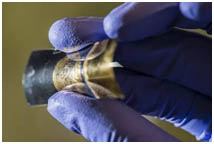美國南卡羅來納大學的研發團隊正研發將棉T恤衫轉化成電源的服裝,將來可起到超級雙層電容器的作用,并且具有極高的儲能密度。通過將該服裝浸泡于氟化物溶液中、干燥并在無氟環境中于高溫下烘烤和活化,使其纖維表面轉化成活性炭,其中少量布樣作為電極,而且在活性炭柔性織物的每根纖維上都含磁性氧化物的納米層,這就可形成穩定的高性能電容器,可為手機或筆記本電腦充電,即使經過上千次充放電后仍能保持高達95%的性能。