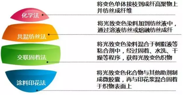 某些溫敏材料是結晶物質,加熱到一定溫度其晶型發生變化,從而導致顏色改變,冷卻至室溫后,晶型恢復,顏色也隨之復原。 另一些有溫敏性能的有機物,由于溫度變化會引起部分結構、pH 、結晶水、電子數的變化或達到熔點后物質體系的顏色發生變化。 將這些物質引入纖維和紡織品即制得可以實現從“有色==無色”狀態的顏色變化的織物。