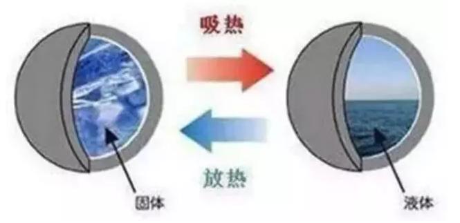 固-液相變儲能材料在溫度高于材料的相變溫度時,吸收熱量,物相由固態變成液態;當溫度下降至低于相變溫度時,物相由液態變成固態,放出熱量。 該過程為完全可逆過程。此類相變儲能材料成本低,相變潛熱大,相變溫度范圍較寬泛。
