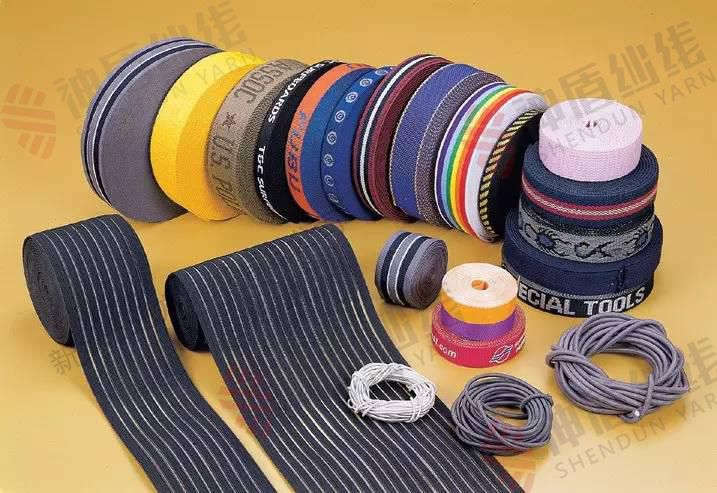 二烯類彈性纖維俗稱橡膠絲或橡筋絲,主要的化學(xué)成分為硫化聚異戊二烯,有較好的耐高溫、耐酸堿、耐磨等化學(xué)物理性能,廣泛應(yīng)用于襪子、羅紋袖口等針織工業(yè)。橡膠絲是早期用到的彈性纖維,由于其主要制作成粗支紗線,所以在織造織物中的使用范圍很有限。