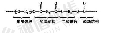聚醚酯彈性纖維是由聚酯和聚醚共聚物通過(guò)熔融紡絲制得的彈性纖維,日本帝人公司于 1990 年首次生產(chǎn)。聚醚酯彈性纖維與聚氨酯彈性纖維結(jié)構(gòu)類似,也具有“區(qū)段”結(jié)構(gòu)特征。“軟”鏈段主要是聚醚鏈段,柔軟性好,鏈較長(zhǎng),容易伸長(zhǎng)變形;“硬”鏈段則是聚酯鏈段,相對(duì)較僵硬,易于結(jié)晶,鏈較短,在纖維受力變形時(shí)起節(jié)點(diǎn)作用,賦予彈性回復(fù)性能,并決定纖維的強(qiáng)力和耐熱性。