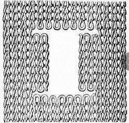在經編生產中原料經過絡紗、整經,紗線平行排列卷繞成經軸,然后上機生產。紗線從經軸上退解下來,各根紗線沿縱向各自墊放在經編針織機的一只或至多兩只織針上,以形成經編織物。