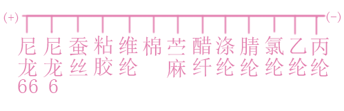 靠近左側的帶正電,靠近右側的帶負電;當棉與尼龍摩擦時,尼龍帶正電,棉帶負電;棉與腈綸摩擦時,棉帶正電,腈綸帶負電;越靠近兩端的纖維帶電量越大,比電阻亦越大,兩種纖維相距越遠,電位差越大。