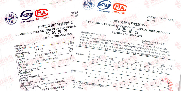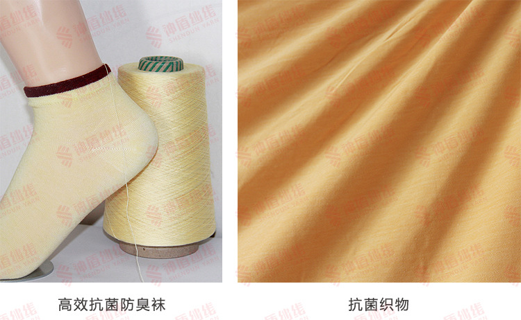 神盾抗菌紗線通過改造纖維表面的結構,形成巨大的帶正電荷的集團,起到控制各種細菌成活的強大作用。并且具有強大的抗菌性、安全性;但是,它也有一個應用中的短板,不能對其實施染色,如果對它進行染色處理,將破壞其強大的抗菌功能,因此淡黃色成為了這款抗菌紗的標志色。除了高效抗菌的功能,就是沒有任何重金屬和化學試劑的存在,可以讓我們安全放心使用這一先進抗菌技術給我們生活帶來的享受。