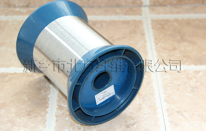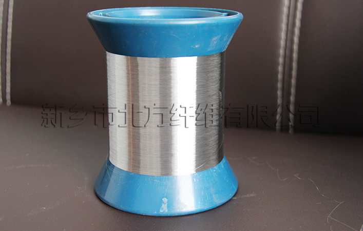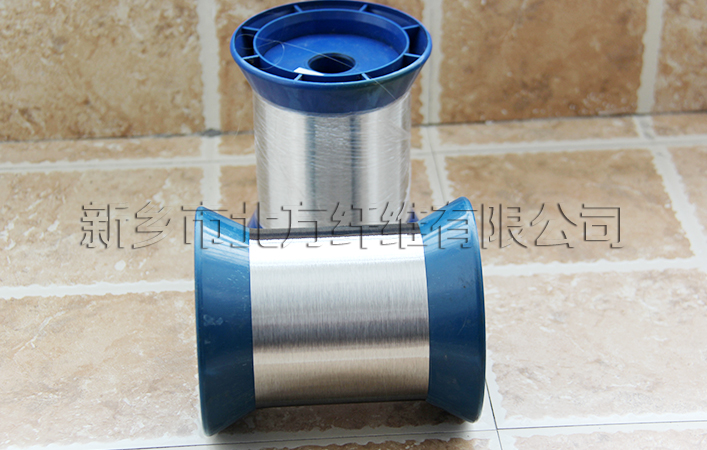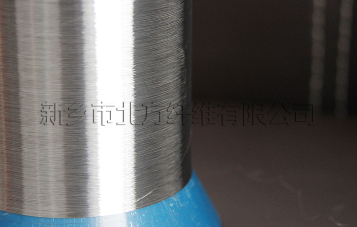 金屬纖維混紡導電紗線,是由金屬短纖維與普通的常規(guī)纖維按一定比例混紡制成的導電紗線,它是一種導電成份非均一性的導電紗線。它以普通的常規(guī)纖維為主體,以金屬纖維為導電成份。金屬纖維在此類紗線中的分布,從縱向看是大體均勻的分布,從橫截面看呈隨機分布狀態(tài),也就是說金屬纖維在導電紗線中不可能完全達到多相均勻分布狀態(tài)。