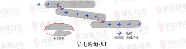 纖維混紡導電紗的導電機理有三種,即:導電通道機理、隧道效應機理、場致發射機理。