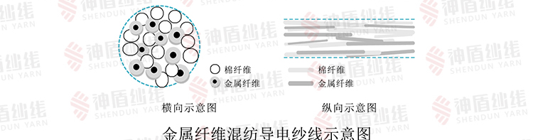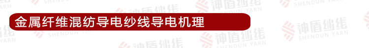 金屬纖維混紡導電紗線,是由金屬短纖維與普通的常規纖維按一定比例混紡制成的導電紗線,它是一種導電成份非均一性的導電紗線。它以普通的常規纖維為主體,以金屬纖維為導電成份。金屬纖維在此類紗線中的分布,從縱向看是大體均勻的分布,從橫截面看呈隨機分布狀態,也就是說金屬纖維在導電紗線中不可能完全達到多相均勻分布狀態。